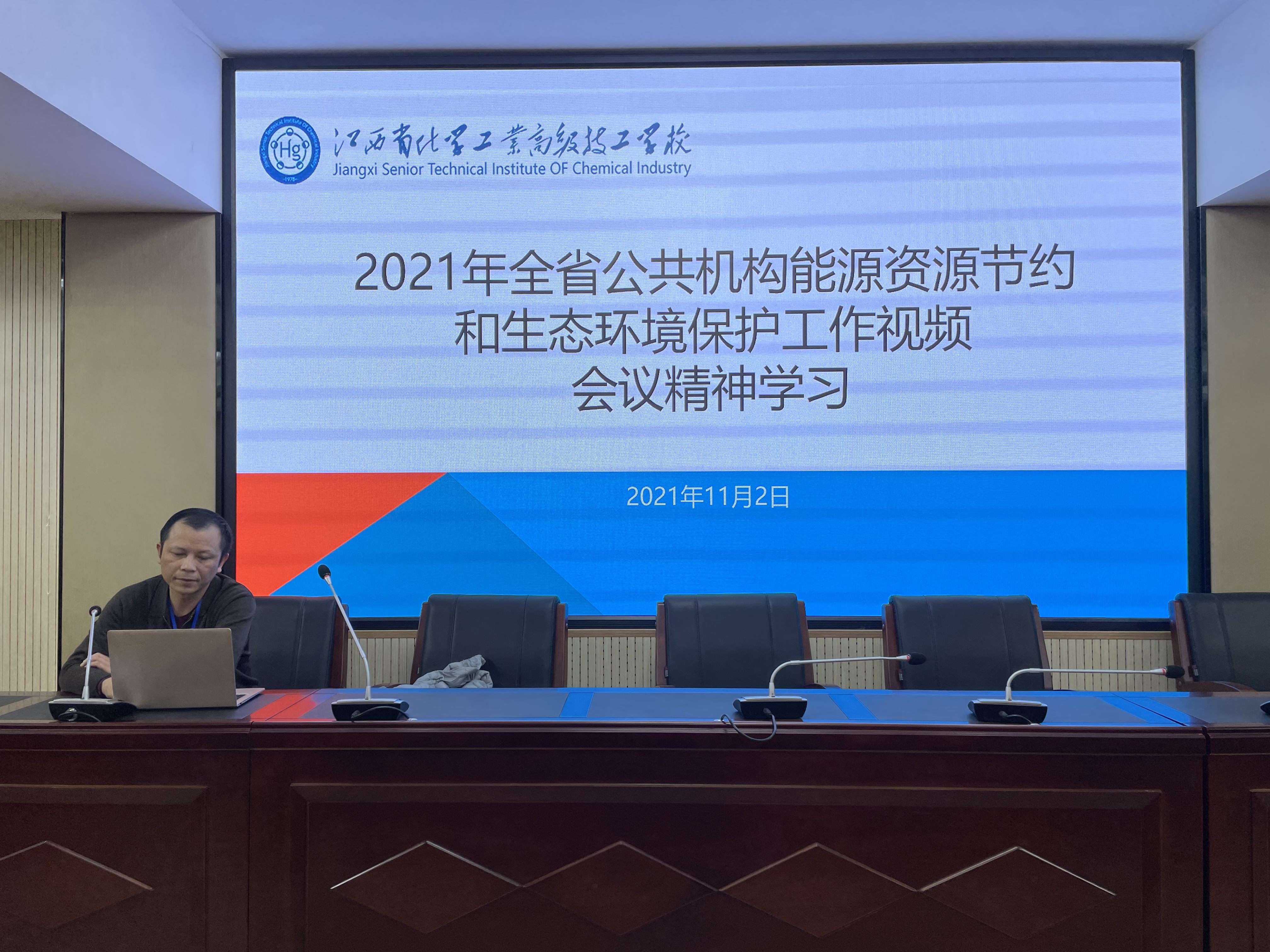 11月2日,江西省化学工业高级技工学校节能办组织召开会议,迅速传达学习全省公共机构节约资源能源和生态环境保护工作会议精神。校党委书记、公共机构节能领导小组组长卢秋晓同志出席会议并讲话,全校教职工参加会议。