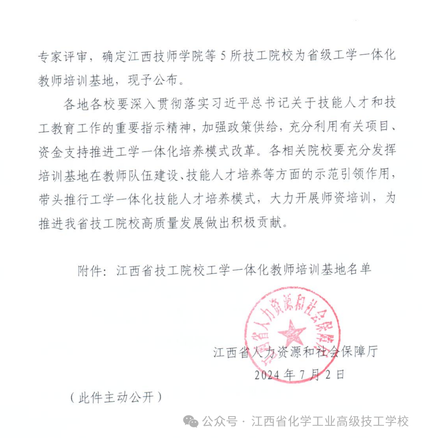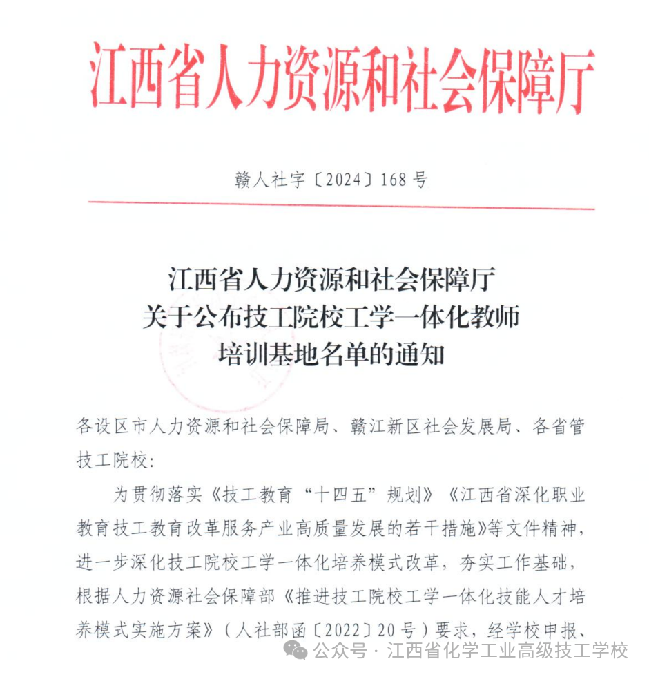 喜报!热烈庆祝我校获批江西省技工院校工学一体化教师培训基地