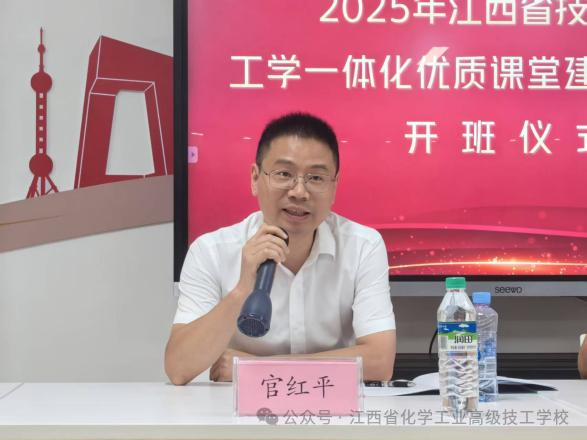 随后,省就业创业服务中心技工教育研究处副处长官红平讲话,他向远道而来的参加各位培训的各位老师表示热烈的欢迎和衷心的感谢。他说,强化教师培训是我们省推动技工教育高质量发展必经之路,在此向参训的学员提出了三点期望:一是珍惜这次难得的学习机会,以饱满的热情、严谨态度全身心的投入到学习中。二是严格遵守培训班纪律,班级管理,严格落实中央八项规定精神。三是大家互相尊重,互相学习,互相帮助,形成一个团结有爱良好学习氛围,携手并行,共同进步。最后,他预祝2025年江西省技工院校工学一体化优质课堂建设师资培训班取得圆满成功!