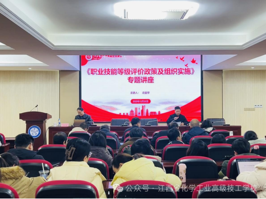 12月24日,继续教育中心组织兴化讲堂专题活动,特邀省就创中心技能人才评价处庄金华副处长到校,以《职业技能评价政策和组织实施》为题开展专题授课。全校教职工齐聚一堂聆听学习,共同深化对职业技能评价工作的认识与理解。