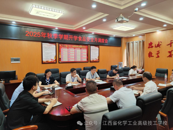 秋季开学季,校园食品安全是保障师生健康、护航教学秩序的“第一道防线”。为全面排查食品安全风险,压实食品安全管理责任,8月29日,学校在实训楼一楼会议室召开秋季开学食品安全月调度会,副校长曾凡毅、梅建明出席会议,总务科、纪委办、平安办及餐饮公司相关负责人参加会议。会议由总务科科长郭平主持。