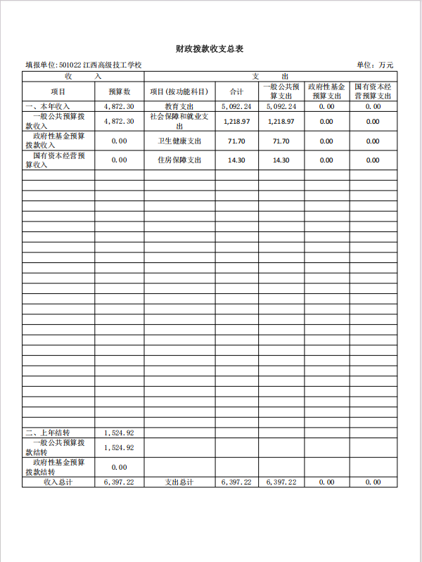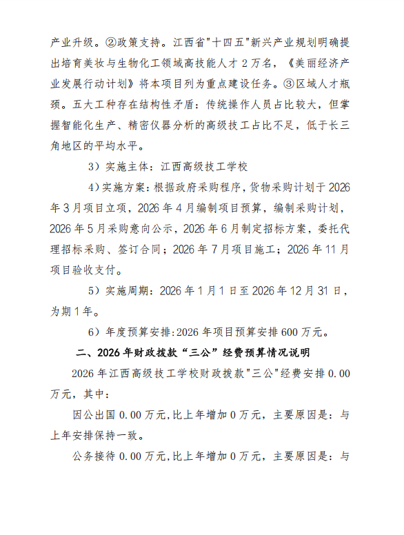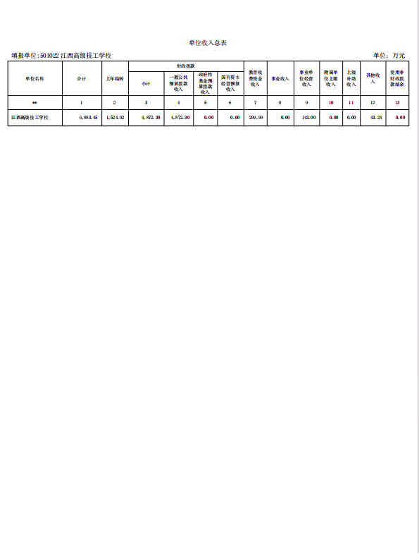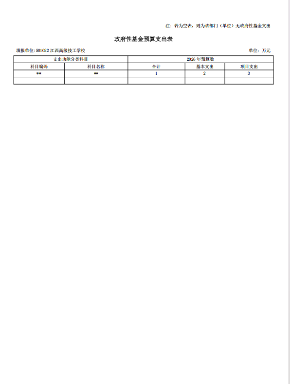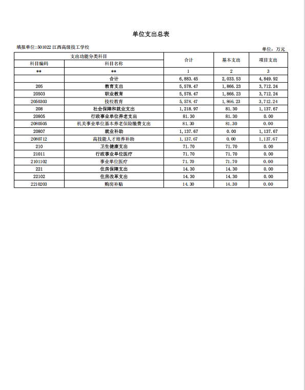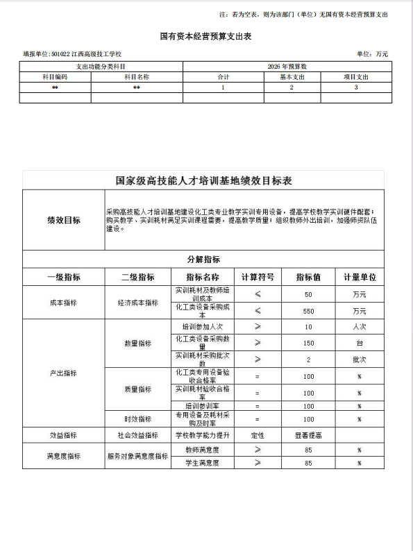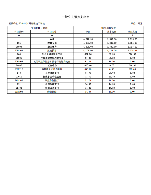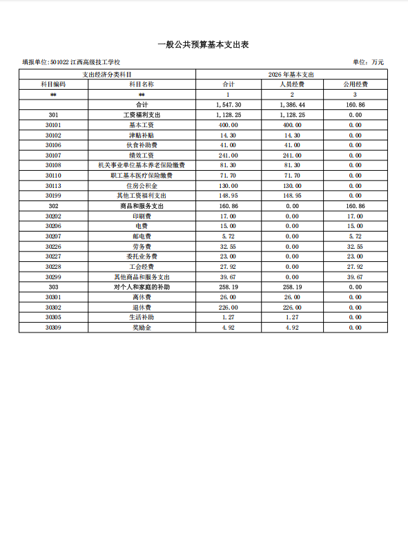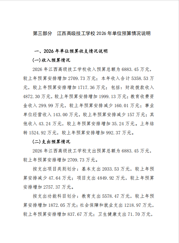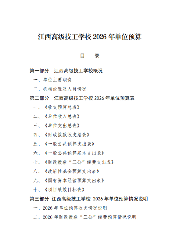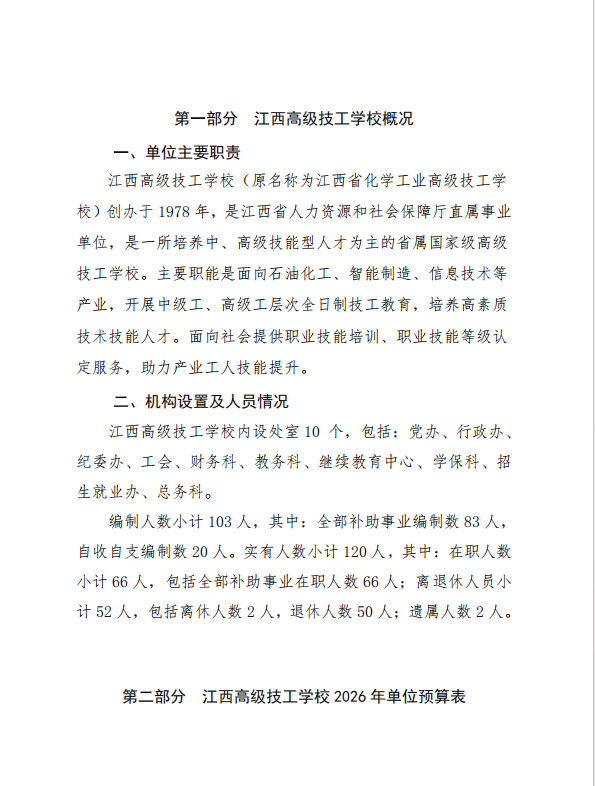江西高级技工学校2026年单位预算